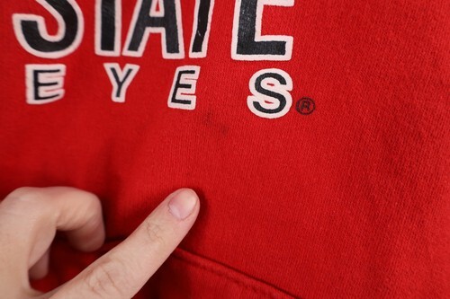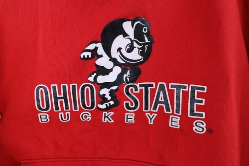 Vintage 90s Womens XL Faded Boxy Fit Ohio State University Hoodie Sweatshirt Red