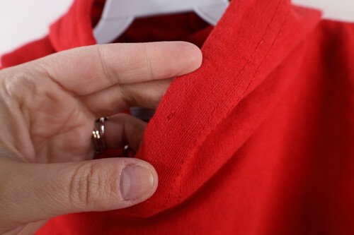 Blemishes front, back, cuffs. Hole hood. Tear left cuff. Boxy fit