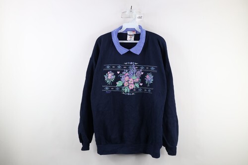 Vintage 90s Country Primitive Womens XL Faded Flower Collared Sweatshirt USA