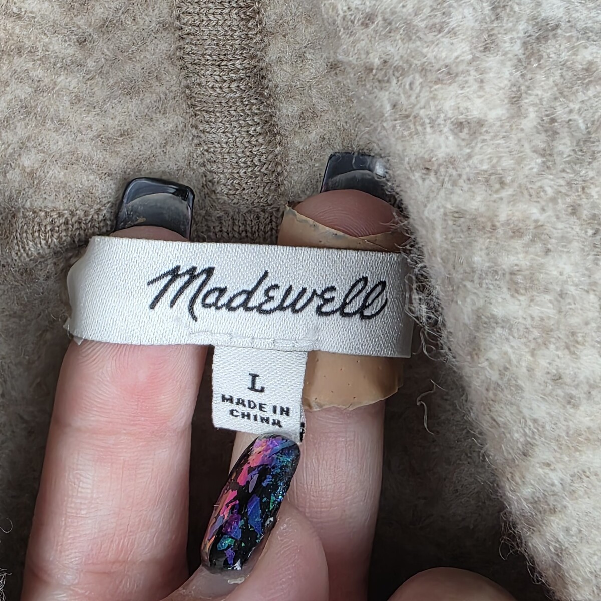 Madewell Jacket Womens Large Beige Herringbone Mattson Sweater 100% Merino Wool