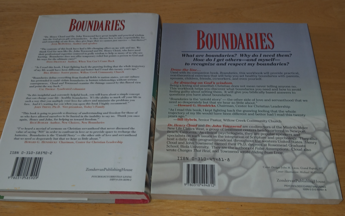 THIS IS A NICE SET OF BOUNDARIES BY DR. HENRY CLOUD AND DR. JOHN TOWNSEND HARDCOVER TEXTBOOK WITH PAPERBACK WORKBOOK THAT IS UNUSED AND BARELY OPENED.