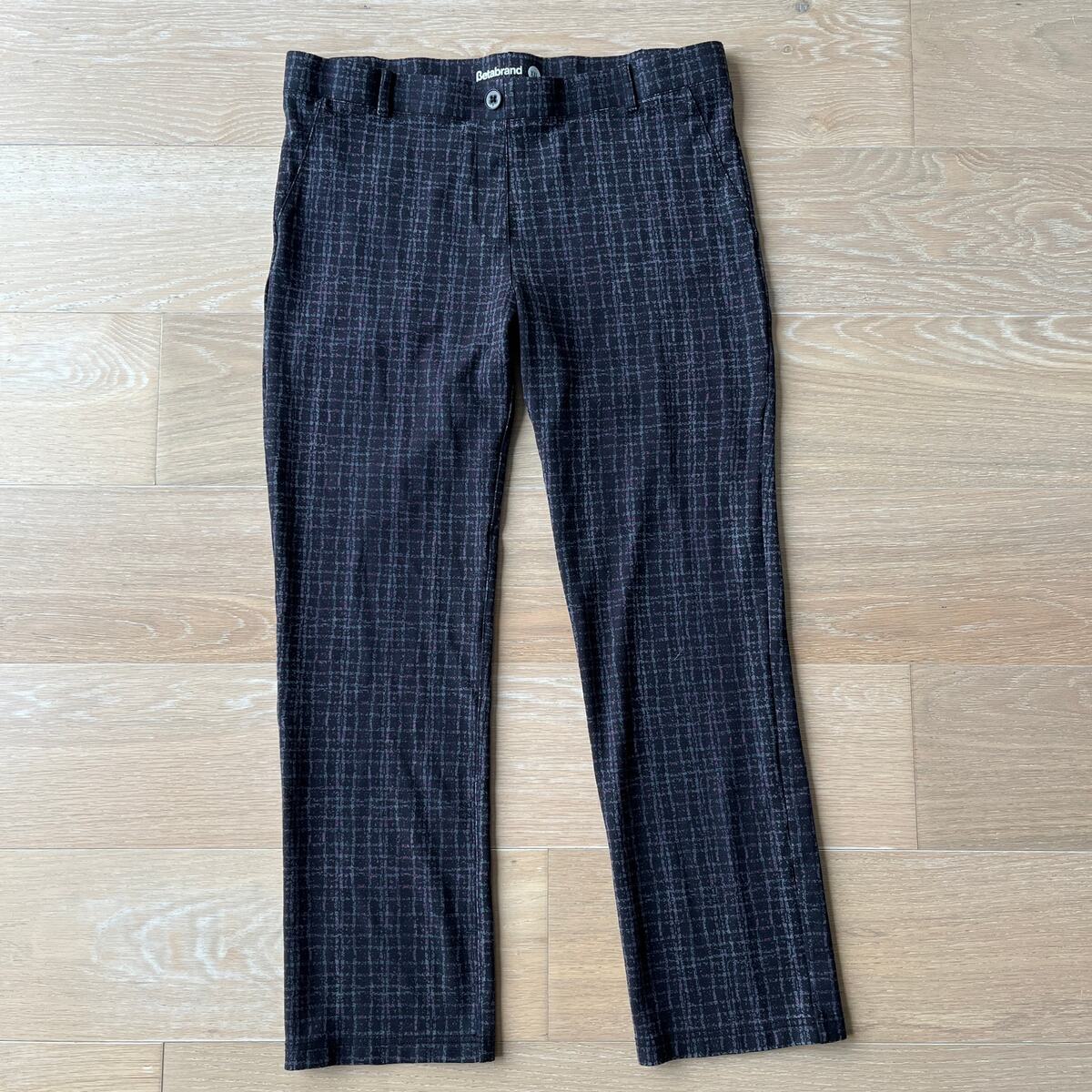 Betabrand Two-Pocket Straight-Leg Dress Yoga Pants in a Black Purple Plaid Multi Pattern