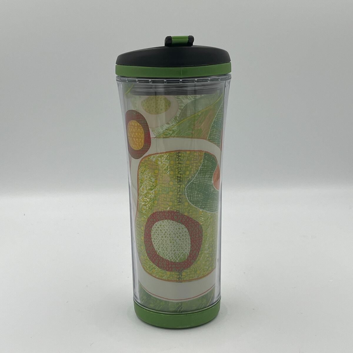 2007 Starbucks Green Brown Rwanda Fabric 16 oz Travel Tumbler NEW