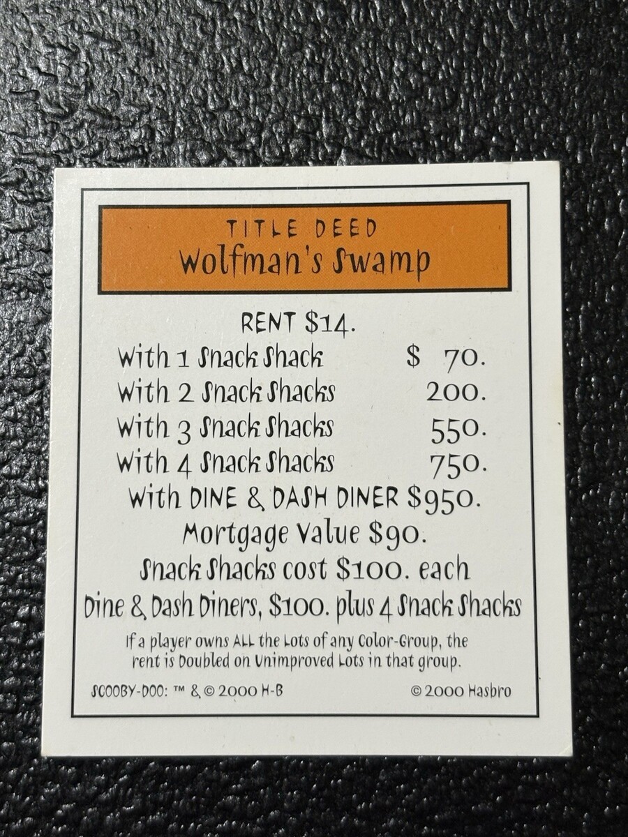 Monopoly Scooby-Doo Collectors Ed. Part: Title Deed - Wolfman’s Swamp