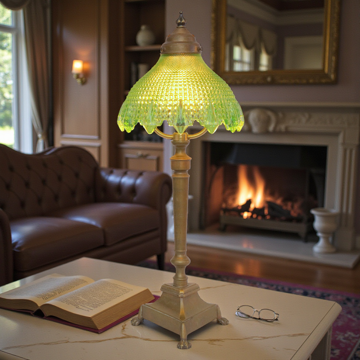 Stunning Original Art Deco Table Lamp "MANCHESTER GREEN" Brass Lamp 1920