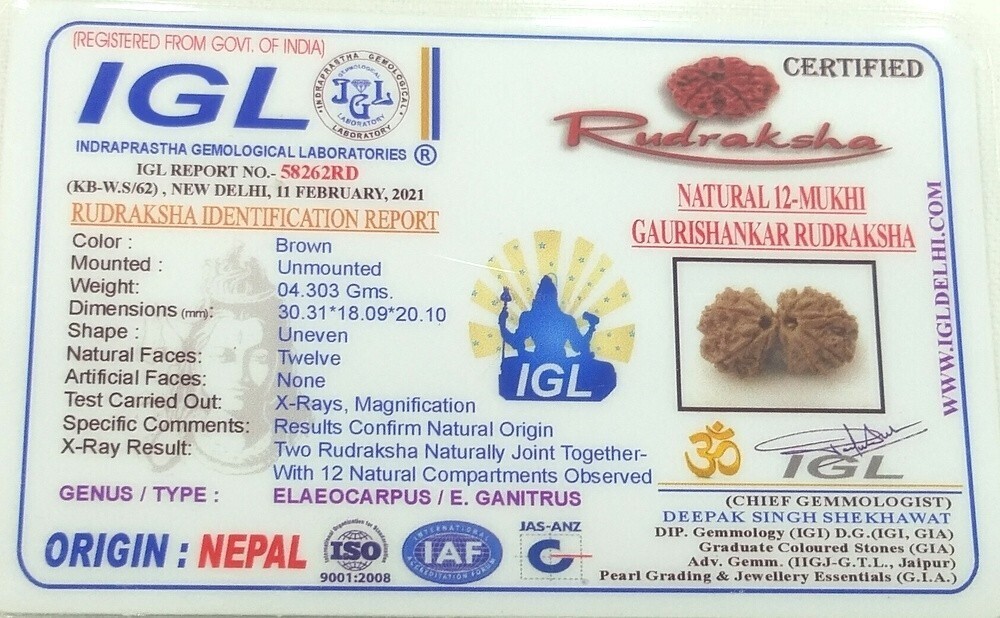 Collector Gauri Shankar Rudraksha – 12 Mukhi - Nepal - IGL Certified