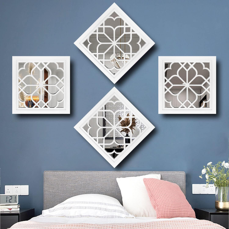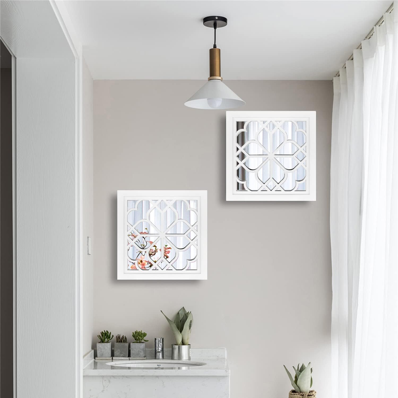 Set of 2 Mirrors Square Wall Mirror,Gorgeous Rustic Farmhouse Accent Mirror,Whit