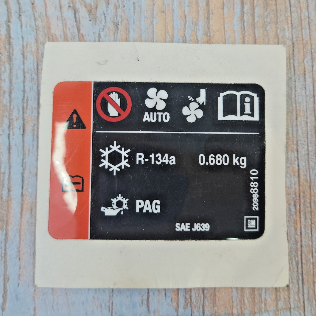 GM 20988810 Impala XTS Regal LaCrosse Malibu Air Conditioning Refrigerant Label