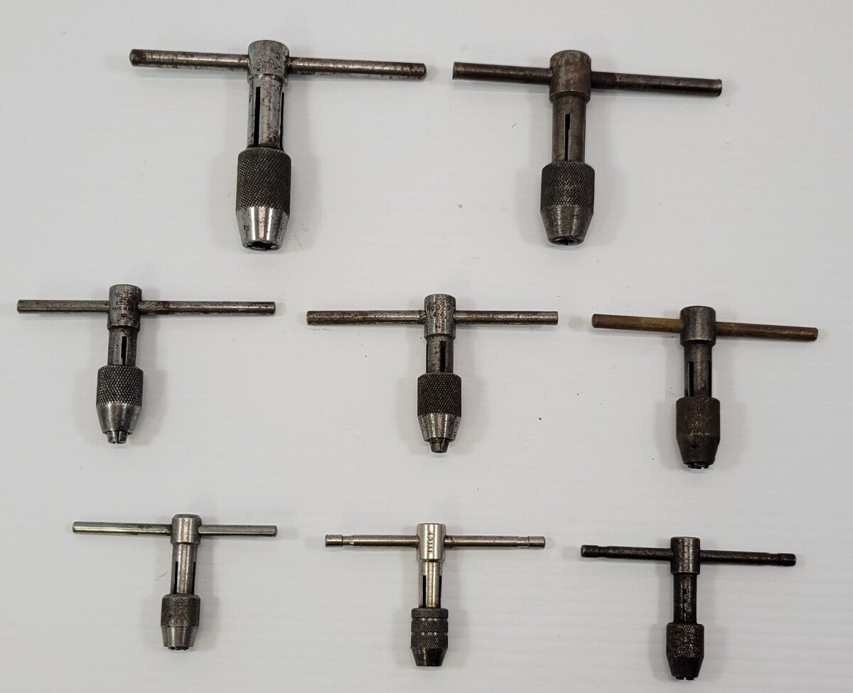 *I) Vintage Mixed Lot of 8 T-Handle Screw Tap Threading Machinist Wrench Tools