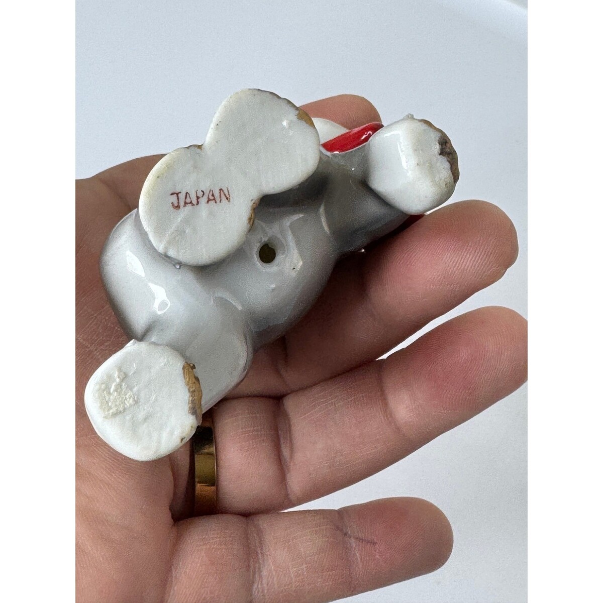 Vintage Anamorphic Elephant Figurine Japan Mid Century Trunk Up Bow Tie