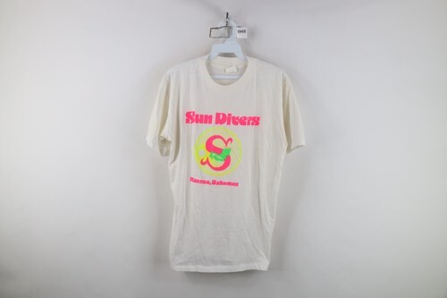 Vtg 70s 80s Streetwear Womens Large Distressed Sun Divers Bahamas T-Shirt White