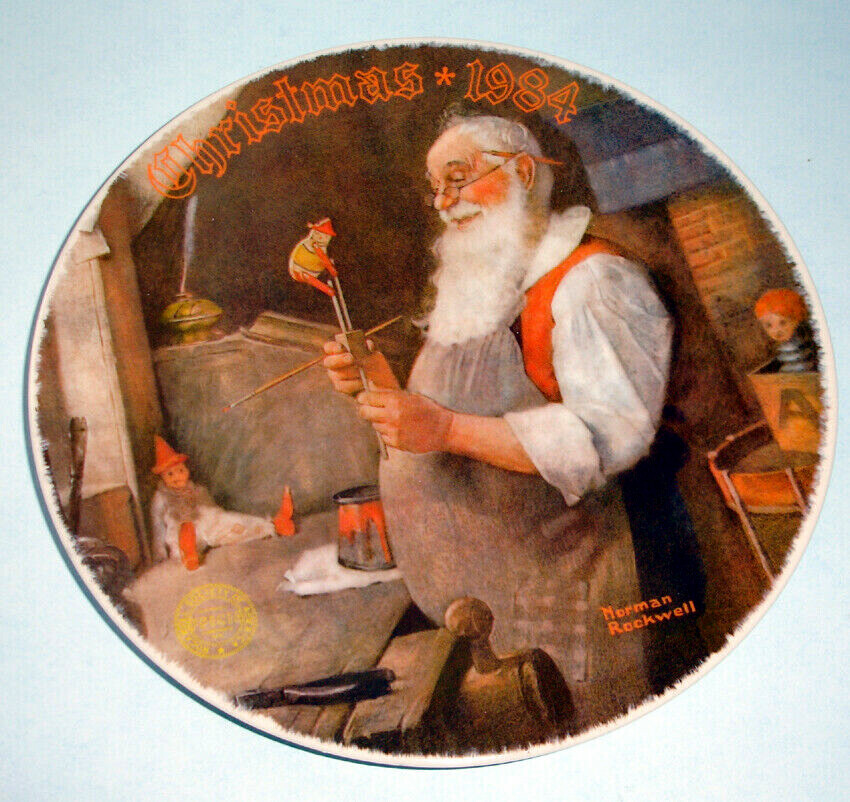 Vintage Norman Rockwell Christmas 1984 Collector Plate Knowles Santa in Workshop