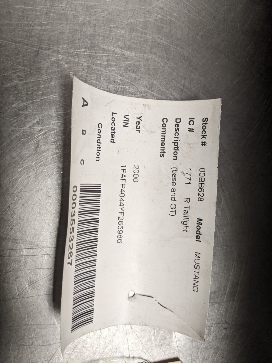 Passenger Right Tail Light For 99-04 Ford Mustang 3.8
