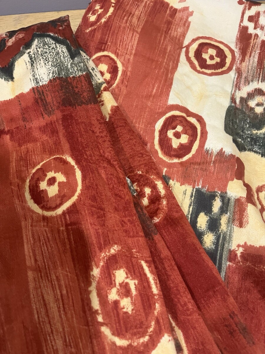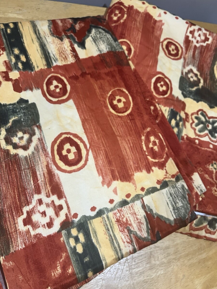 IKEA Mara Orange Green Curtain Panels 100% Cotton Made In Italy Geometric 54x78”