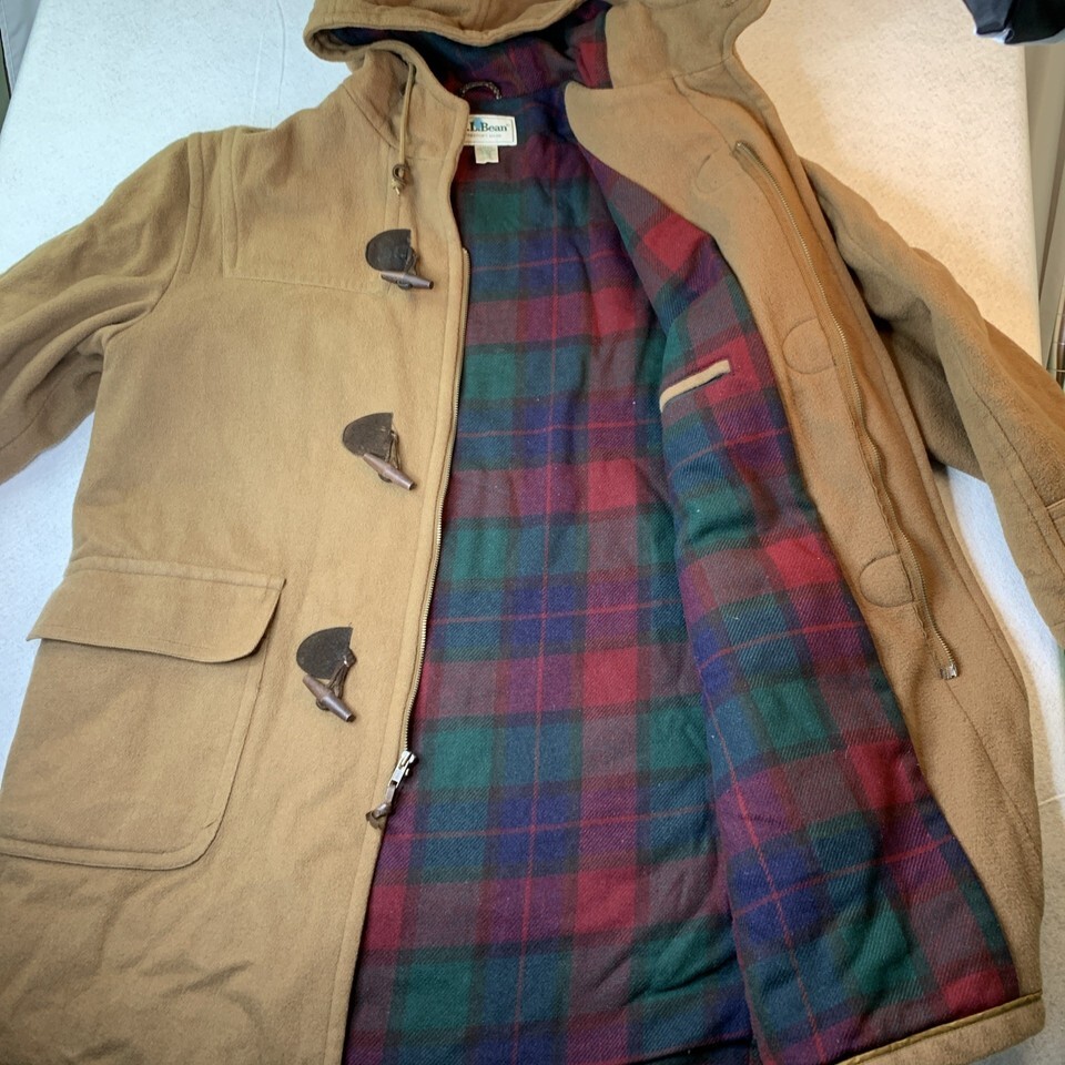 Vintage LL Bean Toggle Duffle Coat Wool Thinsulate Beige Tan Size Large Hooded