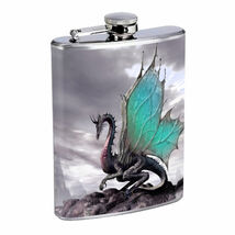 Flask 8oz Stainless Steel Dragon Design-001 Custom Skin Fantasy Drinking Whiskey