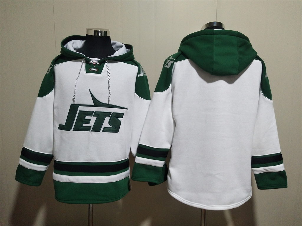 Breece Hall Jets White Lace-Up Pullover Hoodie
