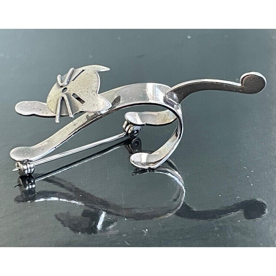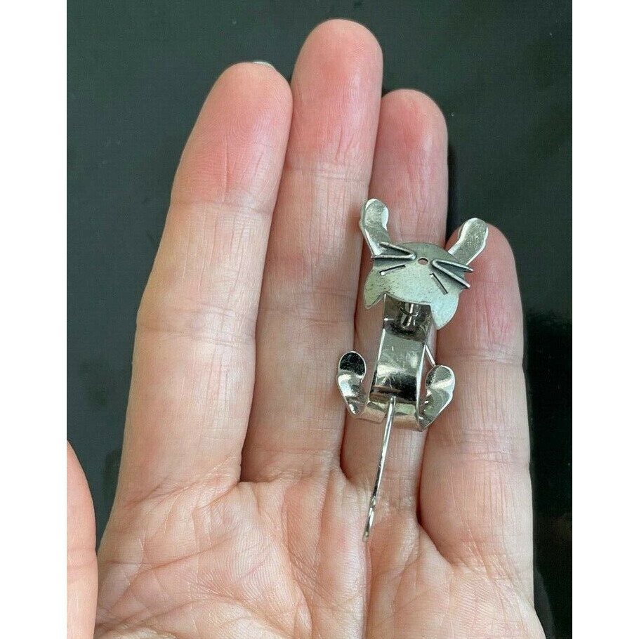 BEAU 925 STERLING SILVER THREE-DIMENTIONAL PLAYFUL KITTY CAT BROOCH SKY