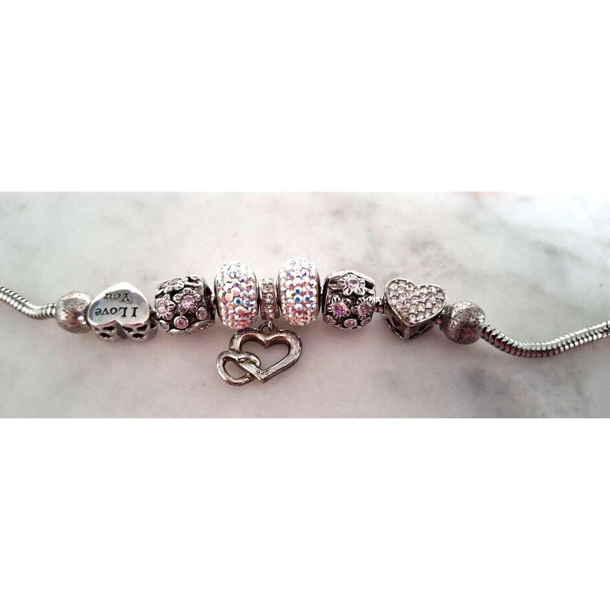 925 STERLING SILVER MULTI GEMSTONES ""I LOVE YOU" SLIDER CHARM BRACELET SKY