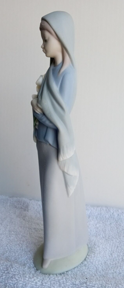 Lladro "Girl with Flowers" Young Woman in Scarf Holding Calla Lilly Retail $260