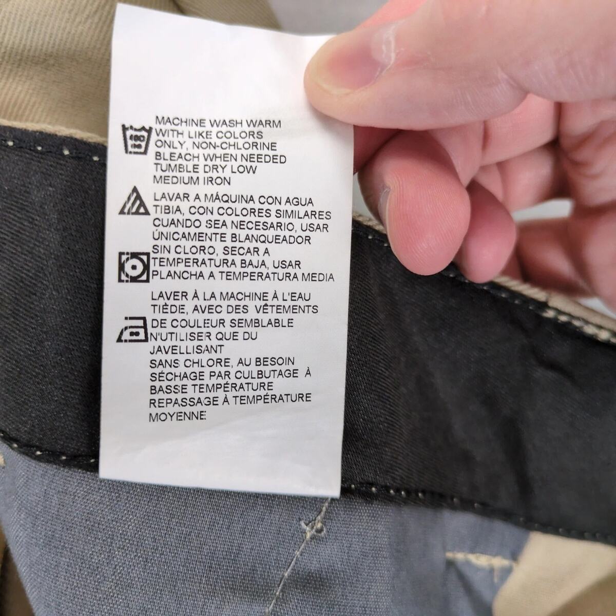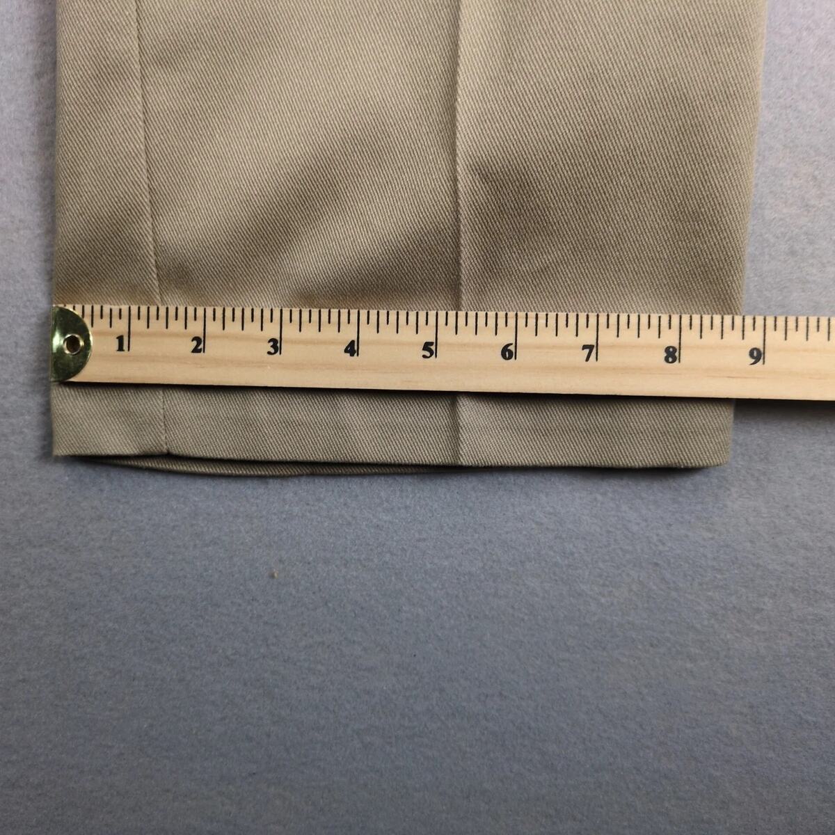 Features: Classic Fit, Straight Leg, Mid Rise, Slash Pocket, Chino Style, Easy Care, Pockets, Stretch, Belt Loops, Moisture Wicking, Wrinkle Resistant, Solid Pattern, 34 in Measured Waist, 32 in Inseam, Buckle Zip Closure, Leg Crease, Logo, Machine Washable