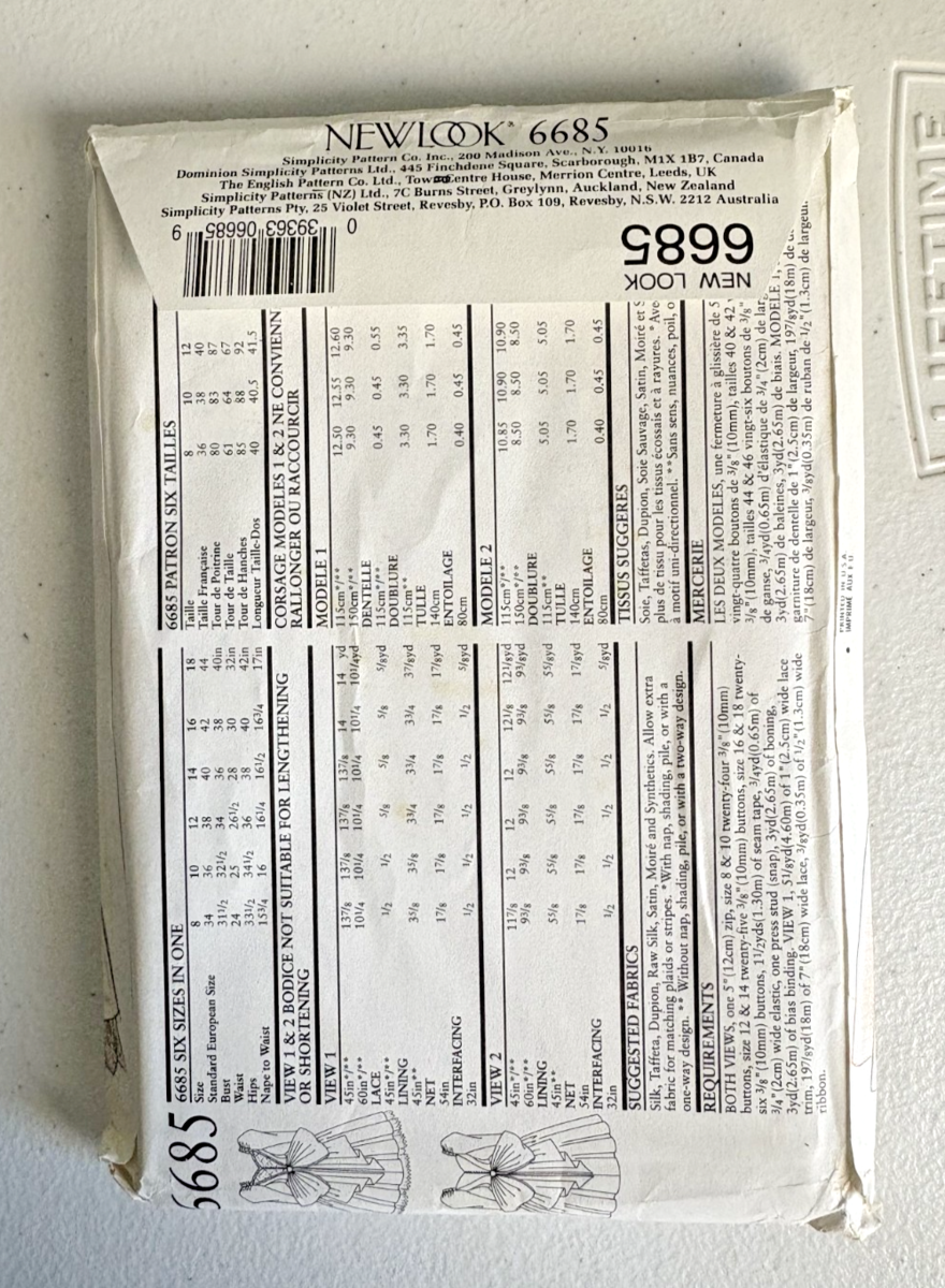 New Look 6685 Pattern Size 8-18 Uncut Wedding Gown Vintage 1980's - This is a new, uncut pattern - UPC #039363066859 - See Photos for further description.
