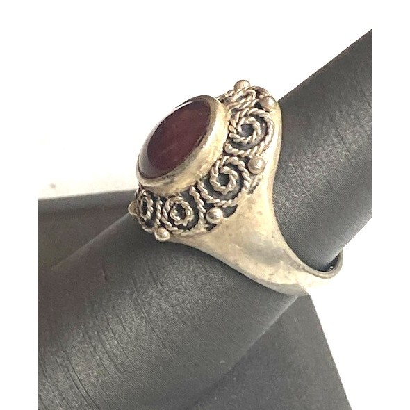 ORNATE 925 STERLING SILVER AND CARNELIAN RING SIZE 6.75 SKY