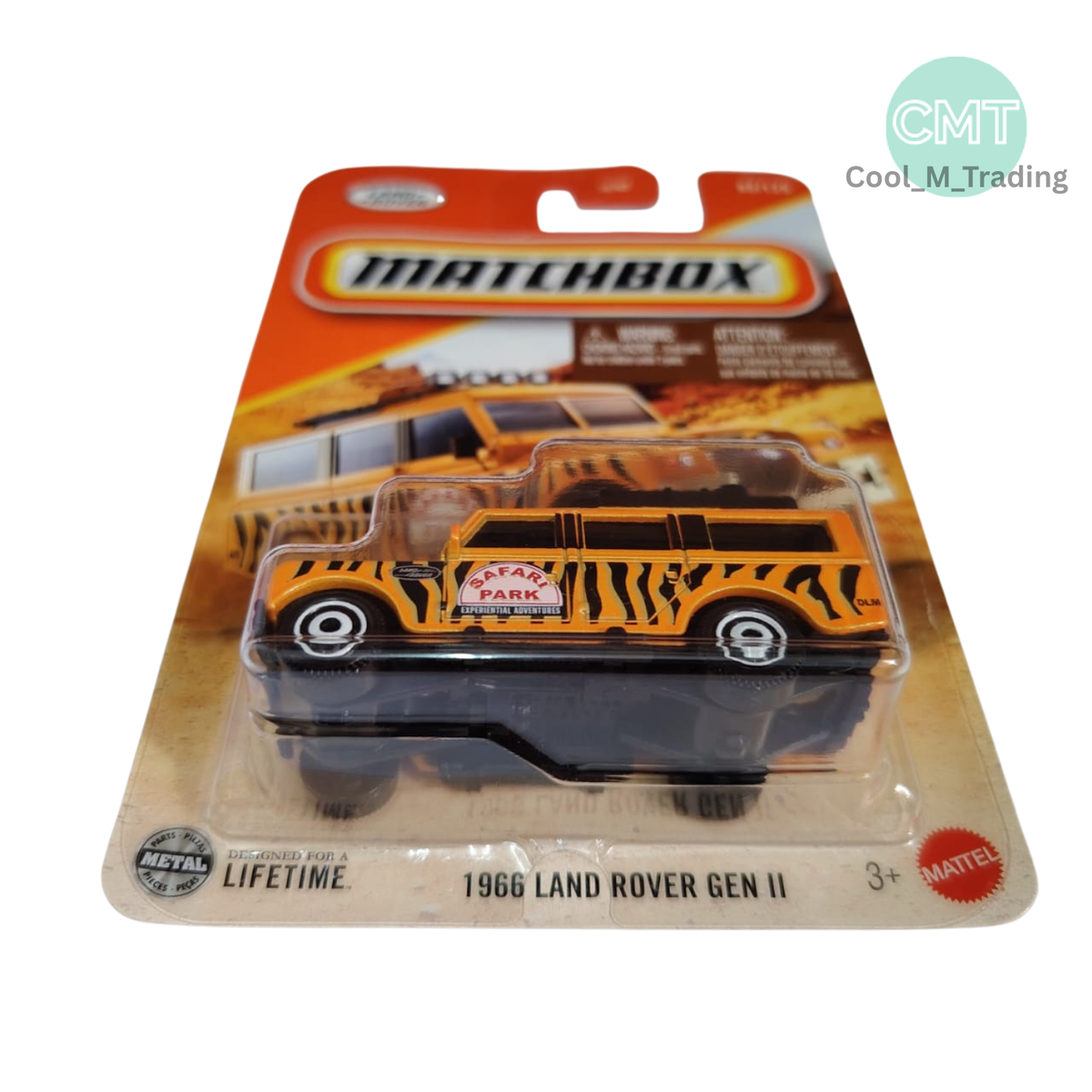 Add a touch of adventure to your collection with this Matchbox 1966 Land Rover Gen II Safari Park #82/125 diecast model. Featuring an eye-catching orange body with black tiger stripes, this 1:64 scale Land Rover captures the rugged spirit of classic off-road vehicles. A perfect piece for Matchbox enthusiasts, Land Rover fans, or anyone who loves collectible diecast cars.