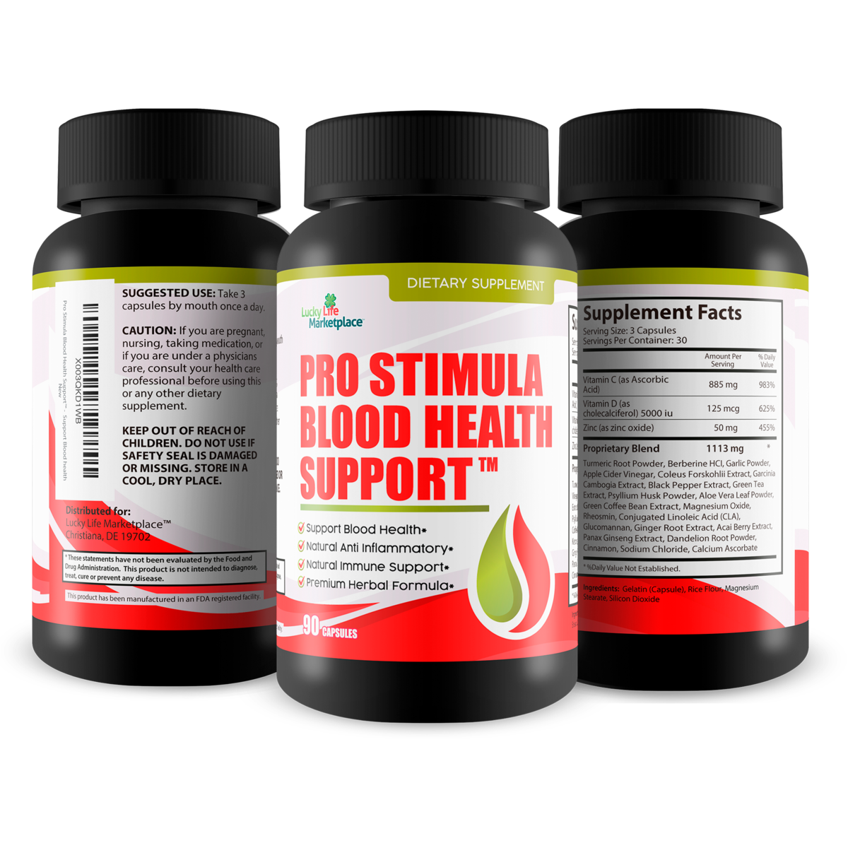 Pro Stimula Blood Health Support contains scientifically researched ingredients including Berberine, Magnesium, Vitamin D3, Turmeric, Zinc, Psyllium Husk, Black Pepper, Vitamin C, Cinnamon, Panax Ginseng, and more for total blood health support. Use it daily for blood sugar support. Its also designed to help reduced oxidative stress and help protect cells from free radical damage. Pro Stimula Blood Health Support contains herbal ingredients to support healthy circulation and cardiovascular health. It also provides additional benefits including immune health support, digestive support, kidney support. Our best natural blood health supplements for men and natural blood health supplements from women are made in the USA under strict quality control guidelines.