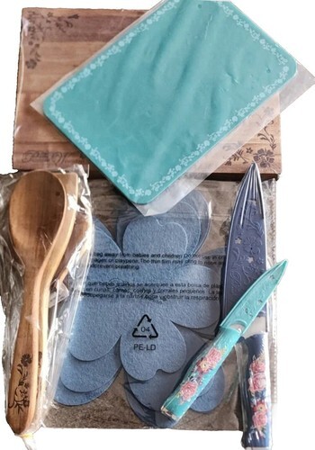 14-Pioneer Woman ~ Wooden Utensils ~ Knives ~ Felt Liners ~ Mats & Board ~ BLUE
