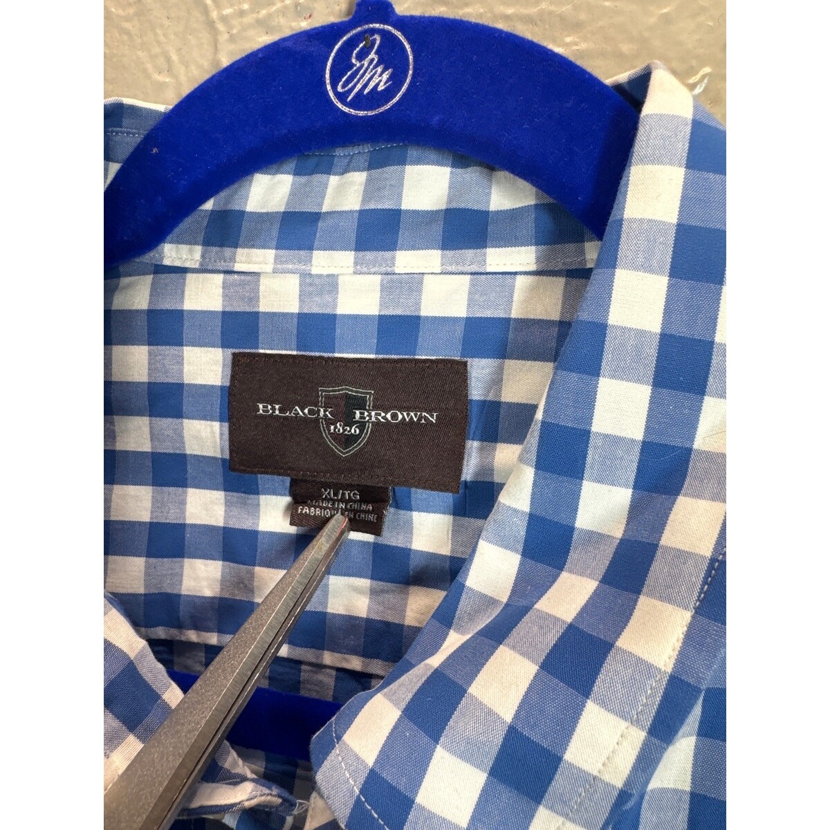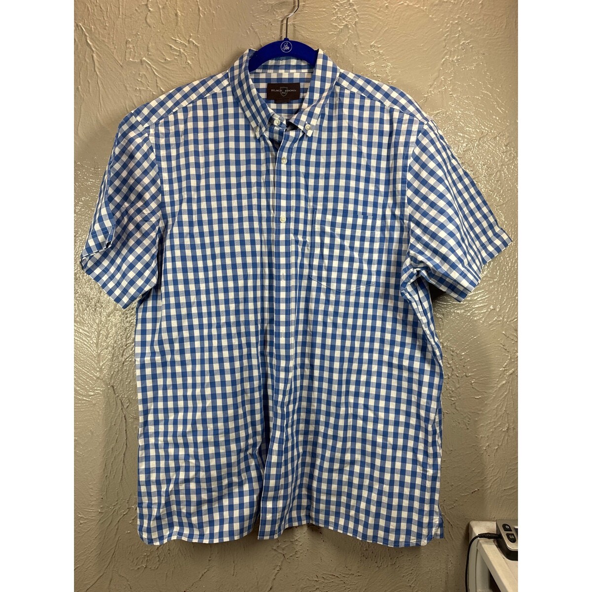 Black Brown Men's Blue Whoye Check Short Sleeve Button Down Size XL