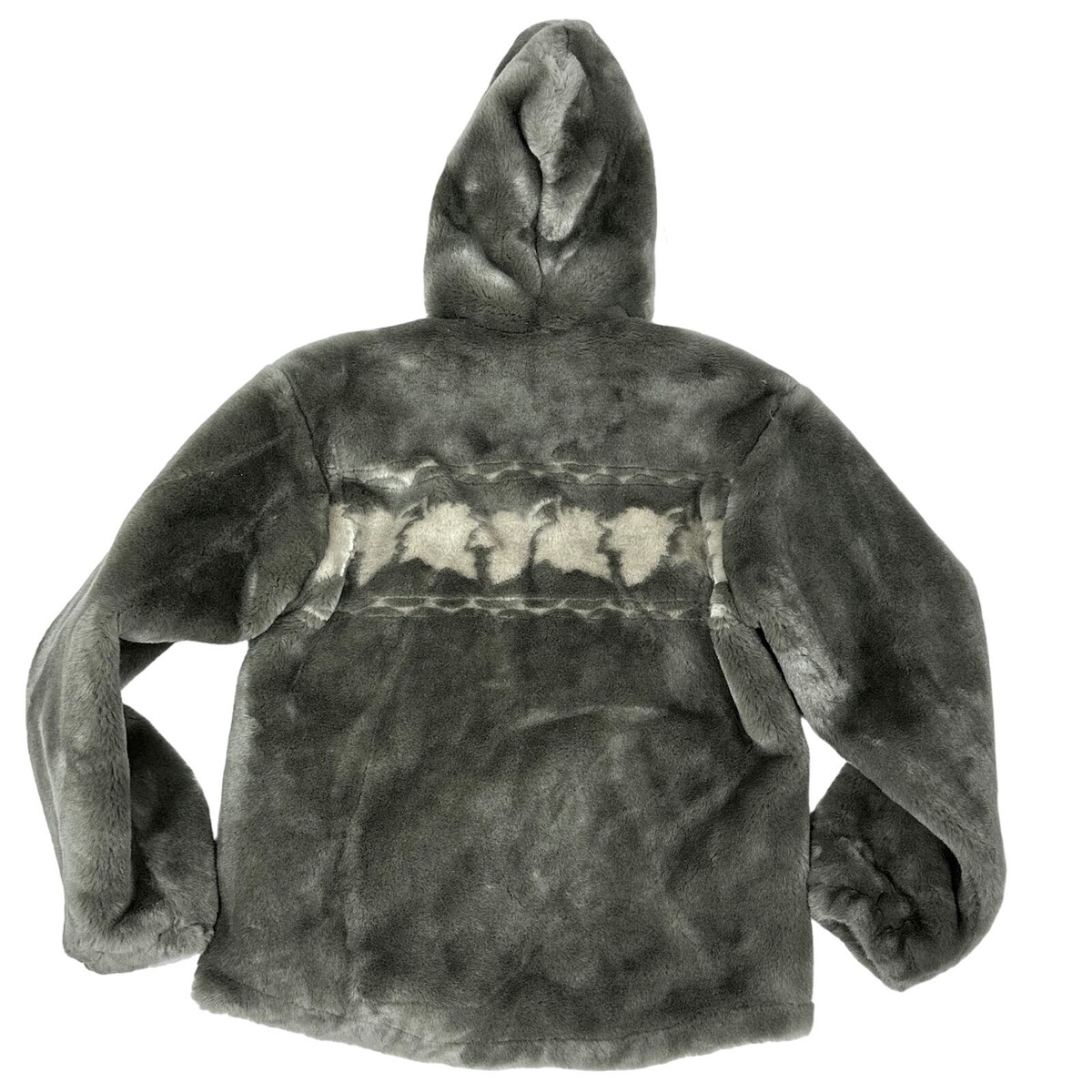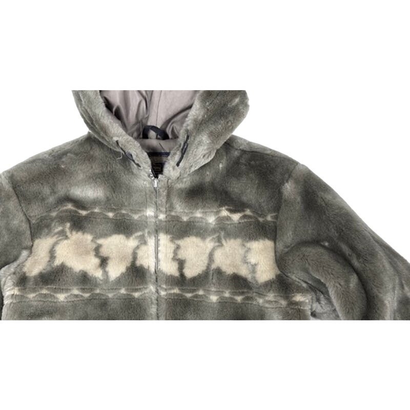 Vintage Woolrich Plush Grey Hooded Zip Jacket Tumbleweed Leaves Fits M/L