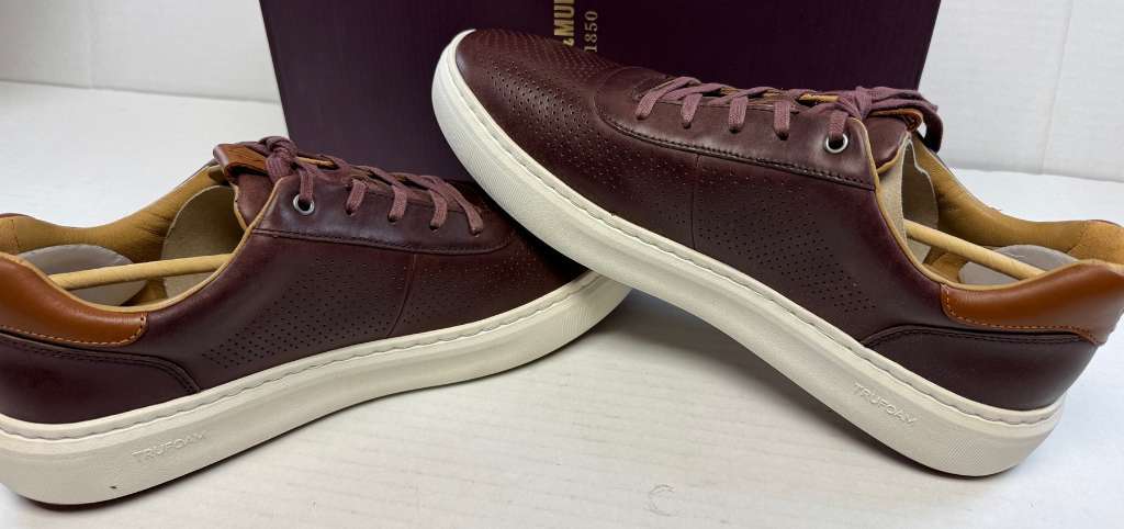 Take your street style game a notch higher wearing the Johnston Murphy Anders Perfed U-Throat Shoes, with elegant lace-up detail and a round toe silhouette. The low-top shoes feature a Ffll grain leather upper, a flexible unlined construction, a molded removable cushioned footbed with soft sheepskin and mesh covering, and a high-rebound, ultra-light TRUFOAM midsole for cushioning and comfort. Tongue pull tab for easy donning doffing. Rubber outsole.