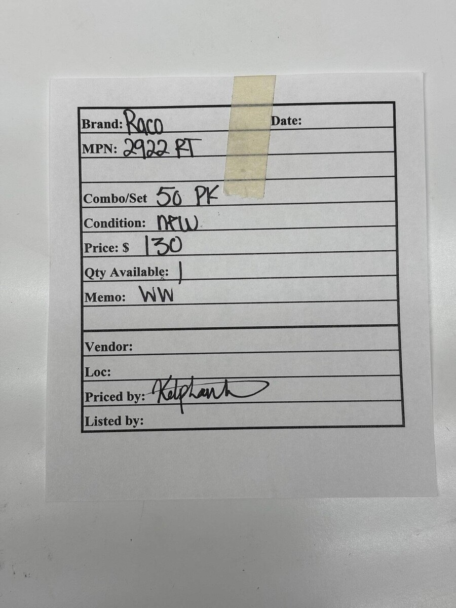 RACO 2922RT Compression Coupling ? 1/2" EMT, Raintight, Pack of 50 New The RACO 2922RT is a 1/2-inch EMT compression coupling designed for secure and watertight connections in electrical conduit systems. Constructed from durable steel with a zinc electroplated finish, it offers enhanced corrosion resistance and mechanical protection. This coupling is UL-listed and marked for wet locations, ensuring compliance with safety standards. Its compression design allows for easy installation without special tools, making it suitable for various industrial and commercial applications. The pack includes 50 couplings, providing value for large-scale projects. Listed by: Renee (Sales Team) ?No matter how small the step, every move forward builds your strength.?-Unknown (A positive moment brought to you by Help Resale) About Us Welcome to Help Resale, your go-to consignment shop where value meets quality. At Help Resale, we're dedicated to providing you with an exceptional shopping experience, whether you're looking to find the best deals or consign your items. Need to buy a product, but don't see it in our store? Please feel free to reach out to us and we will help you find it! Help Resale 7200 Fair Oaks Blvd Suite 120 Carmichael CA 95608 Business Hours: Monday-Friday: 9:00 am to 5:00 pm (PST) All product and company names are trademarks TM or registered trademarks of their respective holders. Use of them does not imply any affiliation with or endorsement by them.