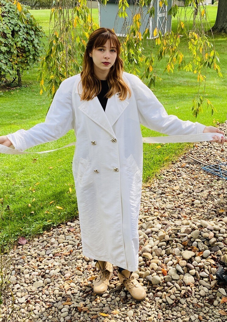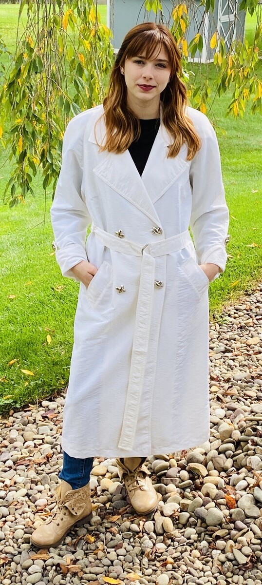 Vtg Bradley Michael White Belted Trench Coat Great Buttons NWOT Sz M 1980s