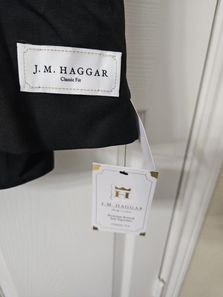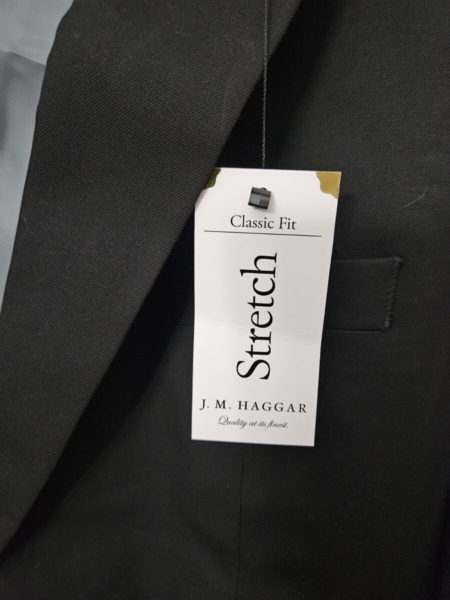 Haggar Mens Classic fit Suit Jacket Blazer 46 Short Black Solid Stretch NWT