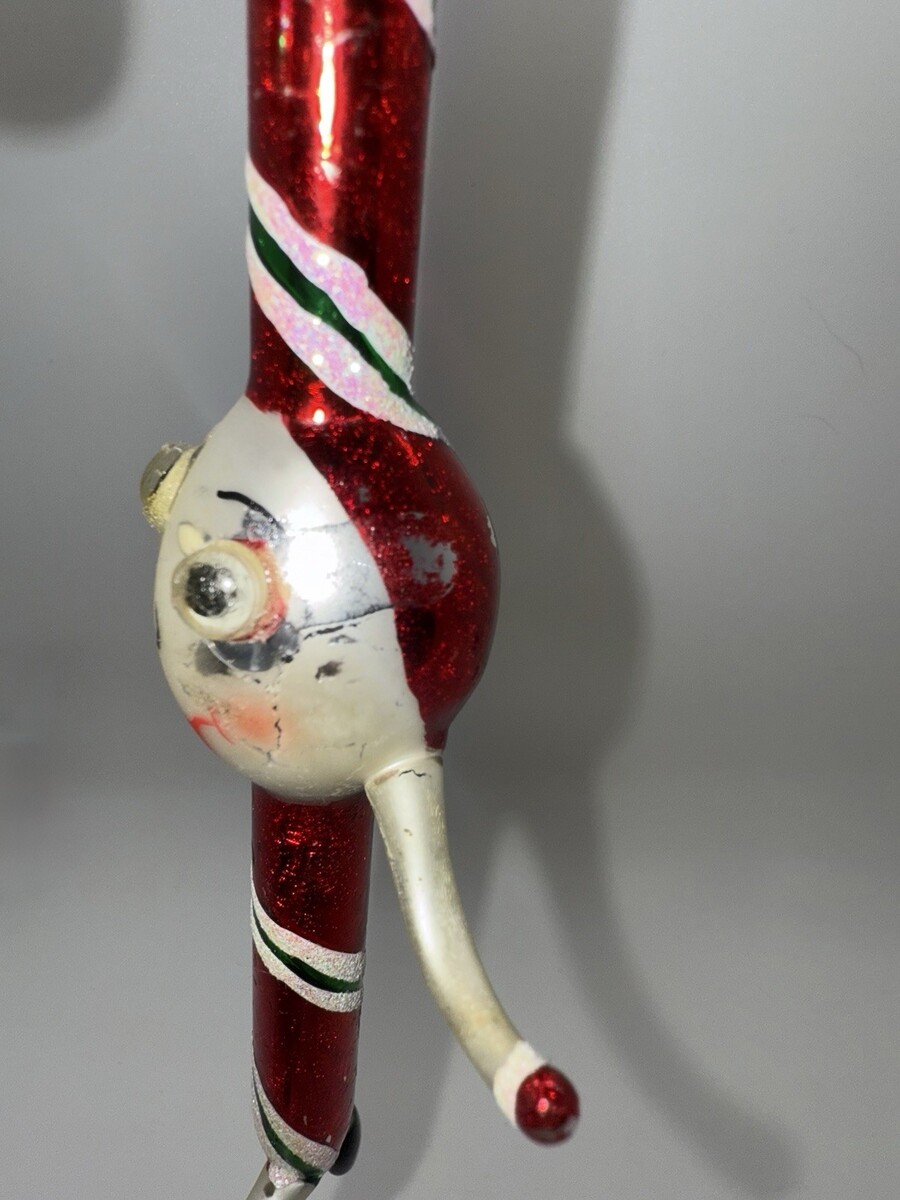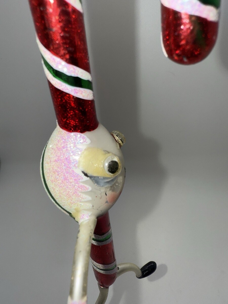 Condition: Overall glossy and displays beautifully. Some paint wear/glue touch-up is present around the eyes (see close-up photos). No cracks or breaks noted. Still a striking piece that adds plenty of vintage charm to any Radko collection or Christmas tree.