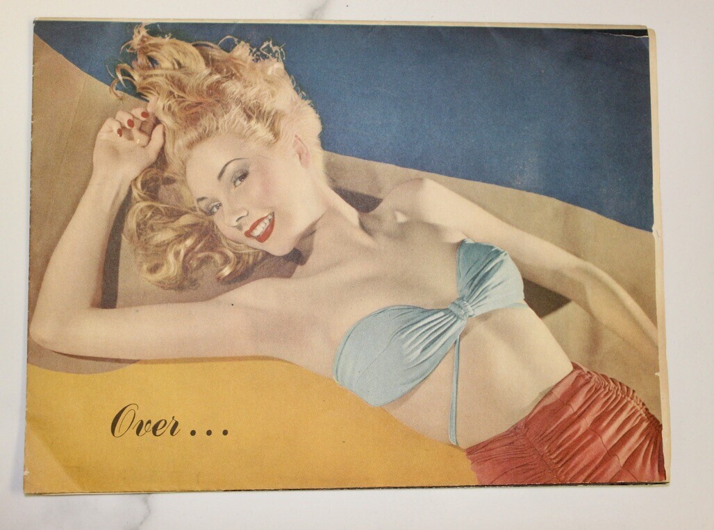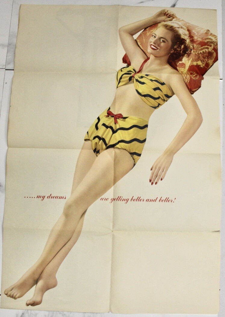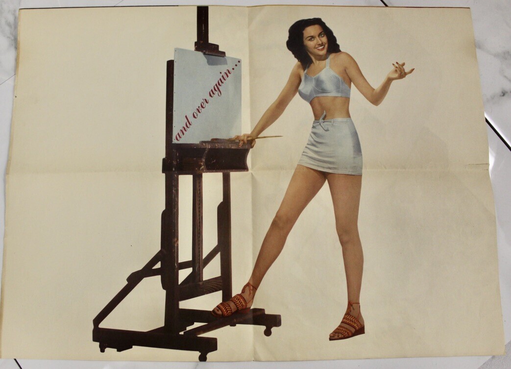 Vintage Pin Up Poster 4 Scenes Folds out to 22 x 32 Color 1940s RARE Print Art