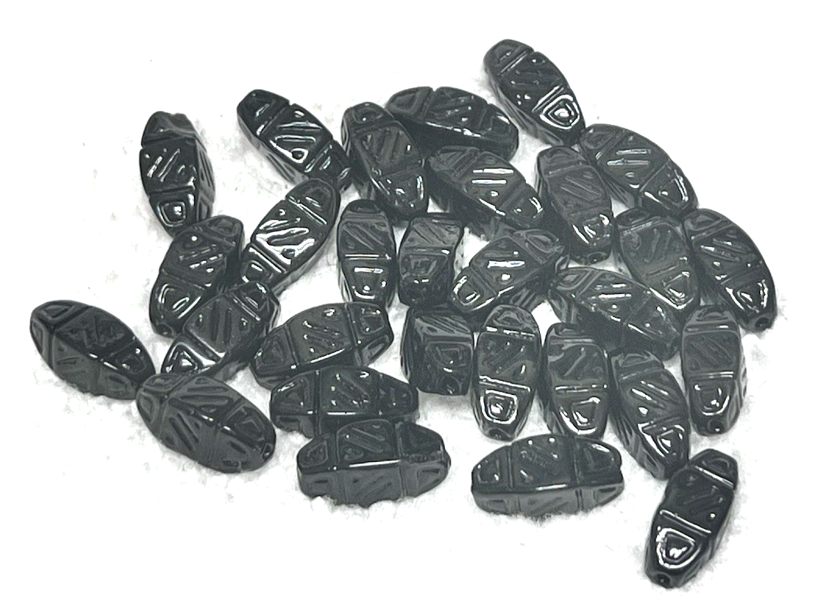 10 Vintage Art Glass Beads Fancy Design Glossy Black 7/16th inch Tube molded pressed glass