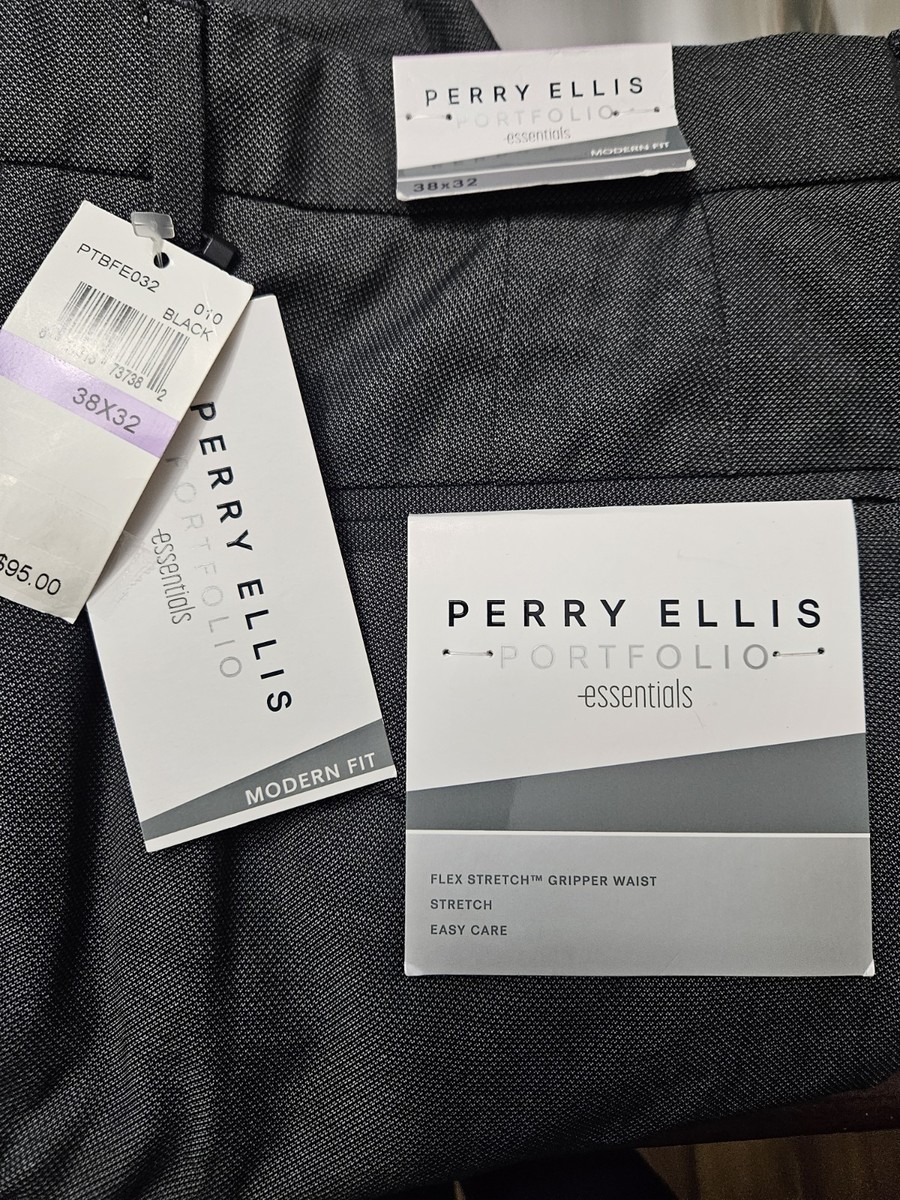 Perry Ellis Portfolio Men's Gray Modern-Fit Birdseye Dress Pant Size 38W 32L