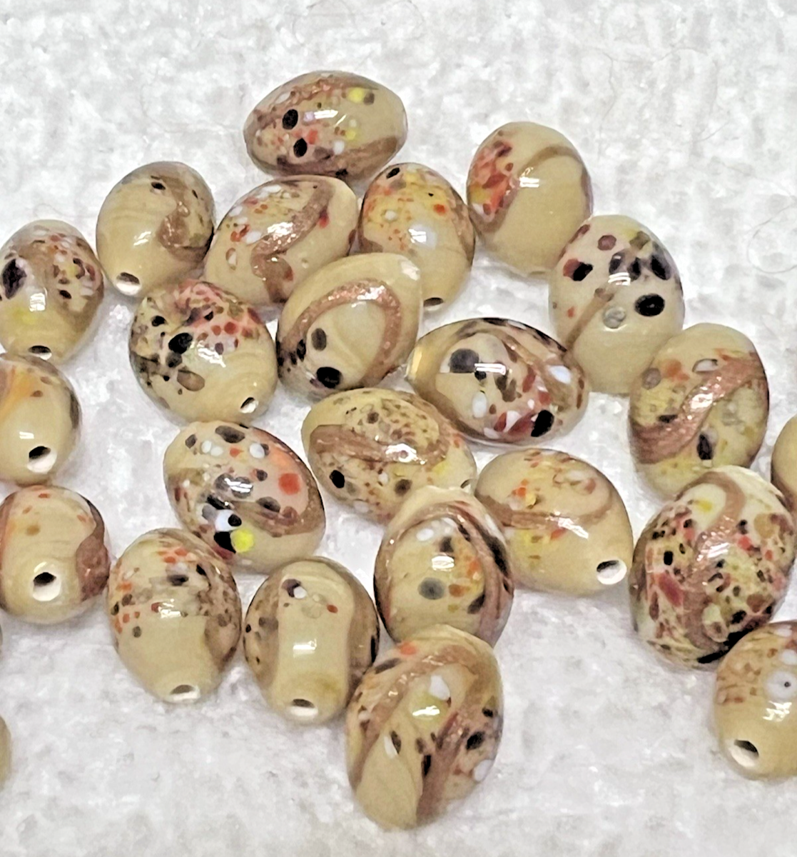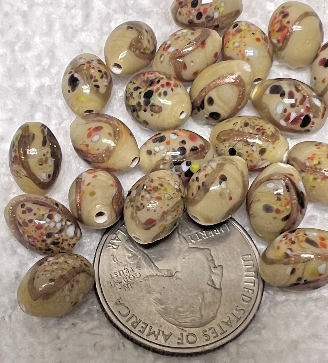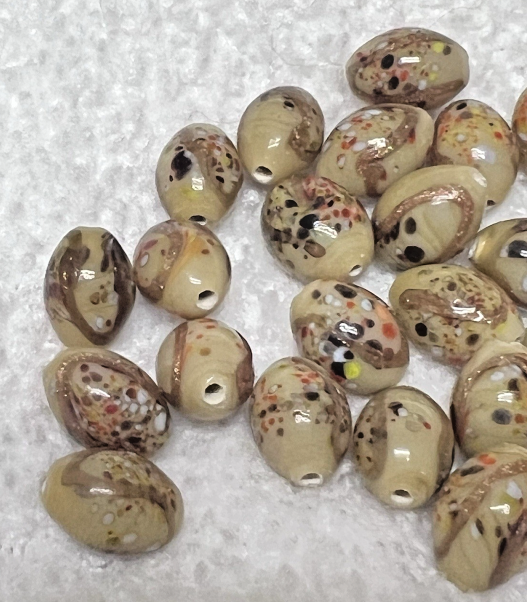 30 Vintage Art Glass Beads Dark Cream Colorful Speckled Ovals 1/2" Long
