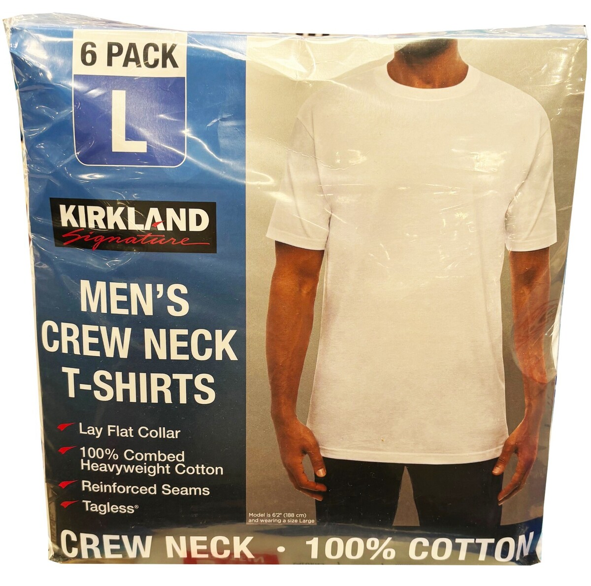 Kirkland Signature Men's 6-pack White 100% Cotton Crew Neck T-Shirt L LARGE