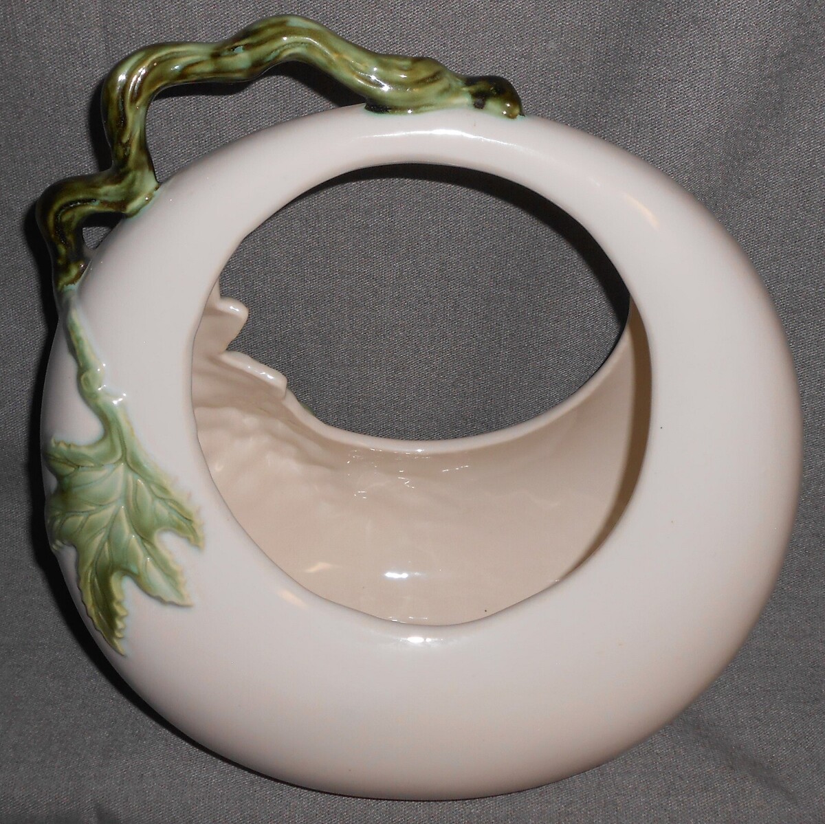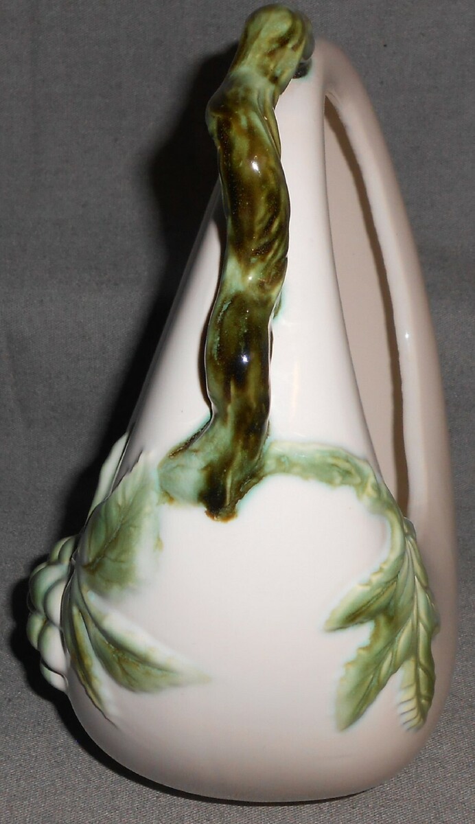 1950s Hull Pottery TUSCANY PATTERN Large Handled Basket MADE IN OHIO
