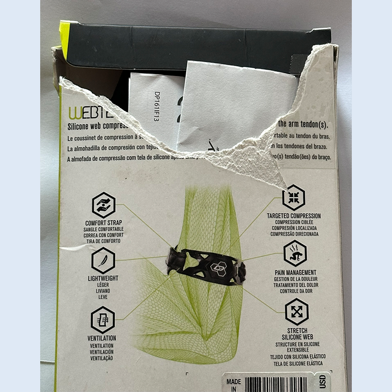 This item is electronically protected. Silicone web compression pad applies targeted and comfortable pressure to the arm tendon(s). Comfort strap; lightweight; ventilation; targeted compression; pain management; stretch silicone web.