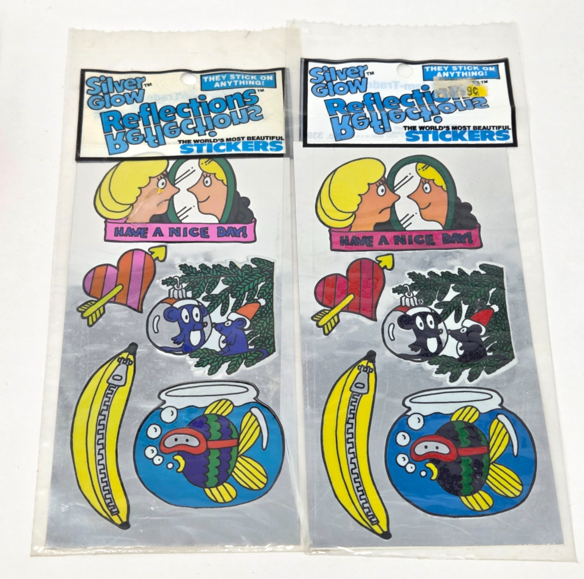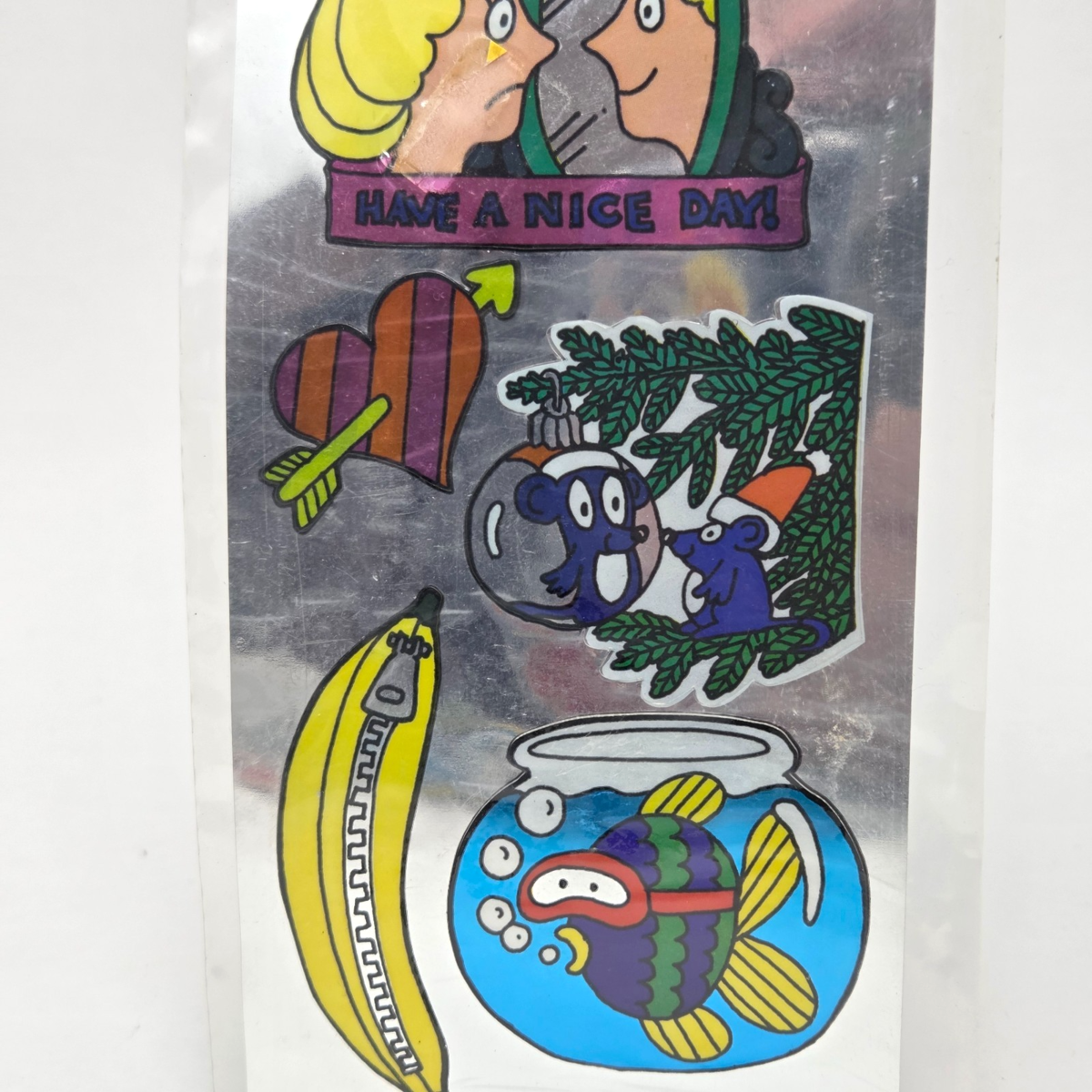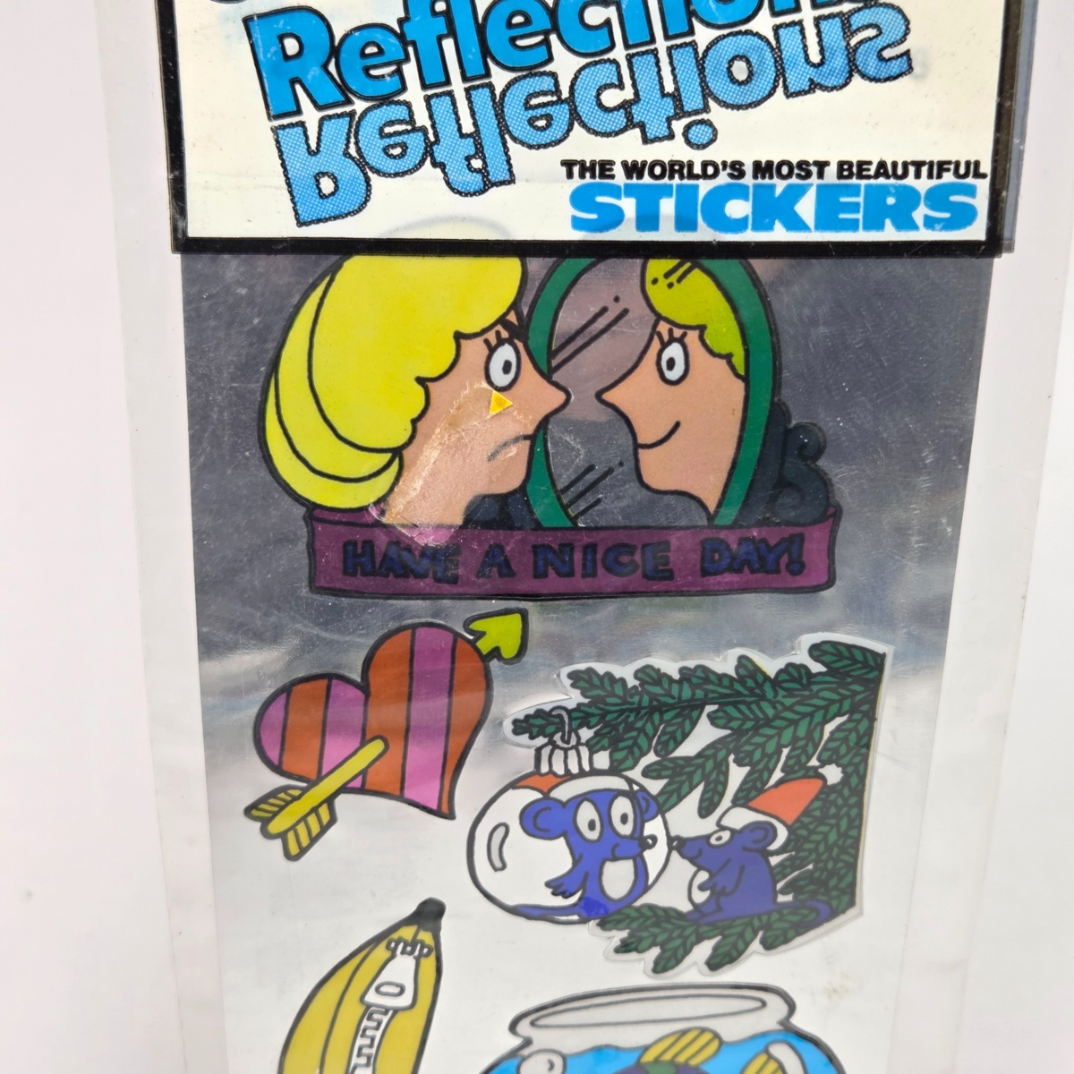 VINTAGE 1983 GORDY SILVER GLOW REFLECTION STICKERS NEW SEALED MIRROR HEART FISH