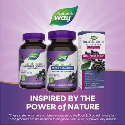 3x Nature’s Way Sambucus Sleep + Immune* Elderberry Gummies, 50 Gummies 06/2026
