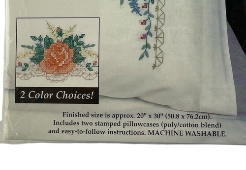 Bucilla Elegant Rose Pillowcases Stamped Cross Stitch Pattern Vintage 1999 64825