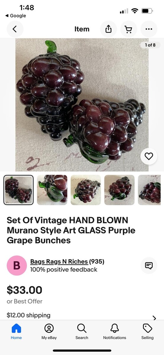 Set of Vintage Hand Blown Murano Style Art Glass Grapes