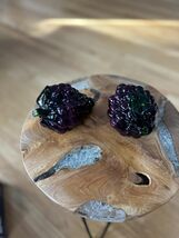 Set of two vintage hand blown Murano style art glass pieces shaped as purple grape bunches.