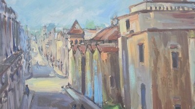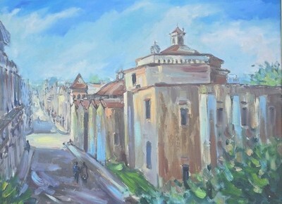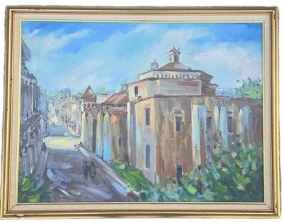 1986 Signed Carlos Hidalgo Church of Santa Barbara Painting Dominican Republic